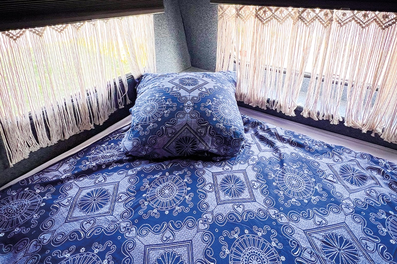 De caravan Harry is een “klein ruimtewonder”: Een ruime voortent met eetgelegenheid en kookplaats, evenals voldoende ruimte om bagage of iets dergelijks te plaatsen, is vast voor de caravan geïnstalleerd. De aanbouw biedt extra leefruimte die bij wind en weer kan worden gebruikt. Slaapmogelijkheden in de wagen zelf zijn aanwezig voor twee volwassenen en een kind. En als de zon schijnt, biedt het aangrenzende zonneterras met gazon ruimte voor uitgebreid zonnebaden. Houd er rekening mee dat de caravan geen eigen sanitair heeft. Gebruik de sanitaire voorzieningen van de camping.