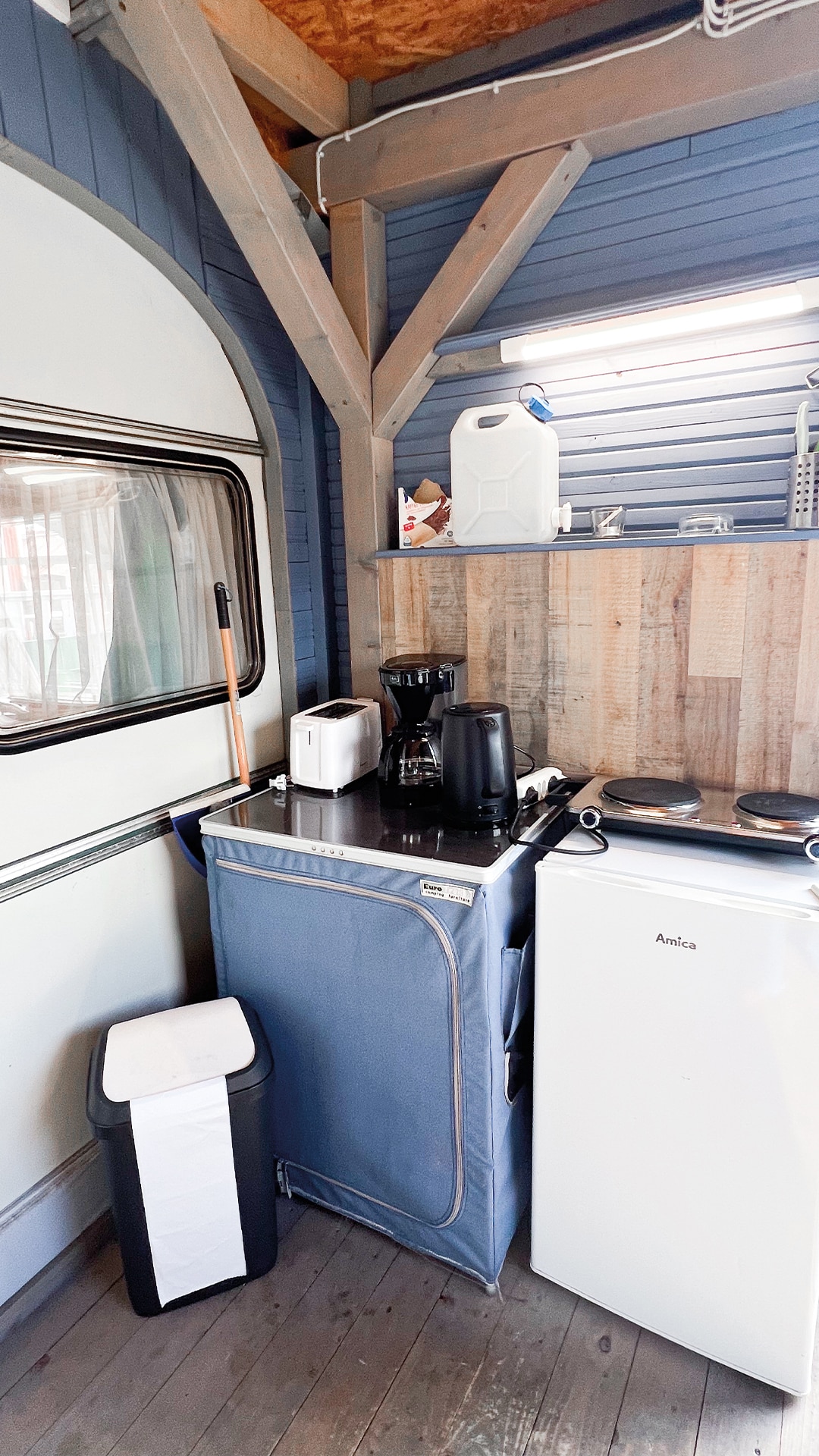 Houd er rekening mee dat de caravan geen eigen sanitair heeft. Gebruik de faciliteiten van de camping.