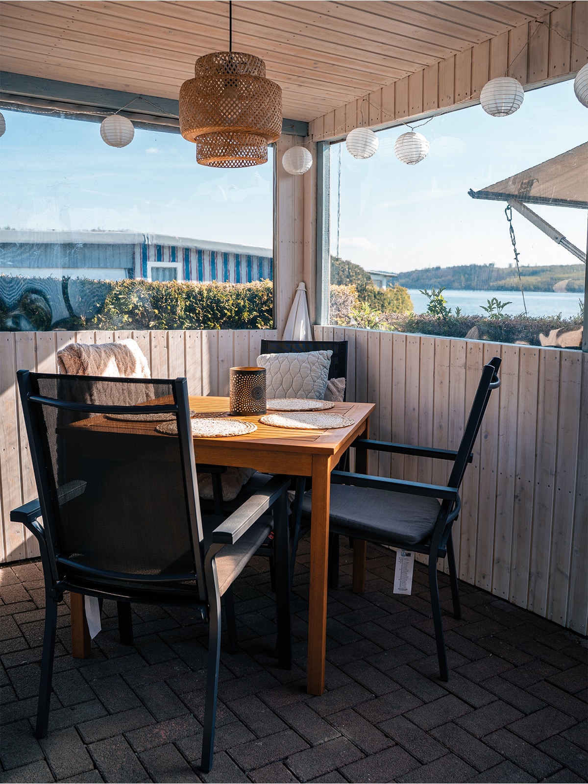 - Eetgelegenheid met tafel en stoelen in de aanbouw